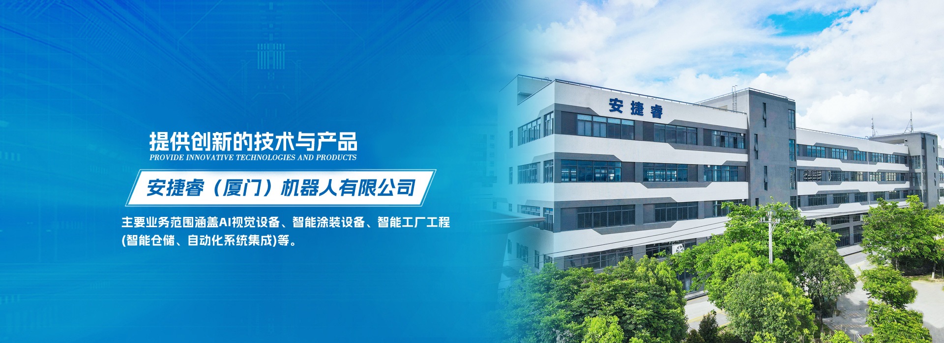 安捷睿(廈門)機器人有限公司坐落于美麗的經(jīng)濟特區(qū)廈門,是專業(yè)從事智能機械、機器人設備研發(fā)、生產(chǎn)和銷售的國家級高新技術企業(yè)。 安捷睿著力服務高端制造業(yè),主要業(yè)務范圍涵蓋AI視覺設備、智能涂裝設備、智能工廠工程(智能倉儲、自動化系統(tǒng)集成)等。公司與清華大學、哈爾濱工業(yè)大學、東北大學、廈門大學等高校緊密協(xié)作,且有多項技術成果轉化。公司致力于解放勞動力,為實現(xiàn)無人化生產(chǎn)提供創(chuàng)新的技術與產(chǎn)品,與合作伙伴共享科技發(fā)展成果。